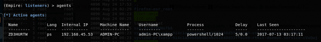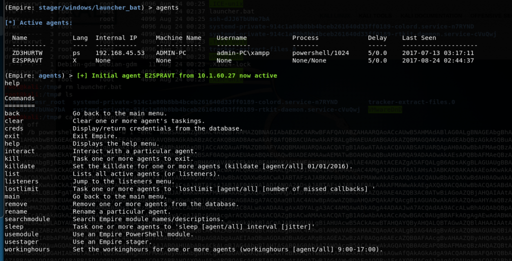Genel olarak Empire’ı kullanarak sistem üzerinden shell alıp post-exploitation modullerini kullandık. İç network tarafında metasploitin meterpreter bağlantılarının güvenlik yazılımları tarafından yakalanmasından dolayı power shell payloadları ile shell alınabilmektedir. Metasploit gibi gelişmiş bir framework değildir. İçinde exploit bulunmamaktadır.