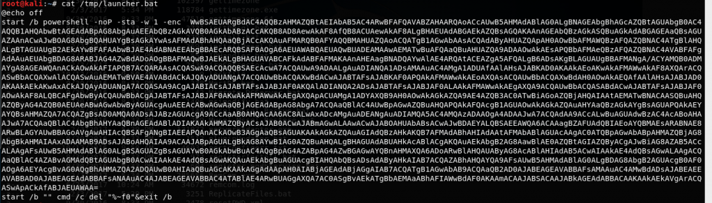 cat /tmp/launcher.bat komutu ile dosyamızı görüntülüyoruz.