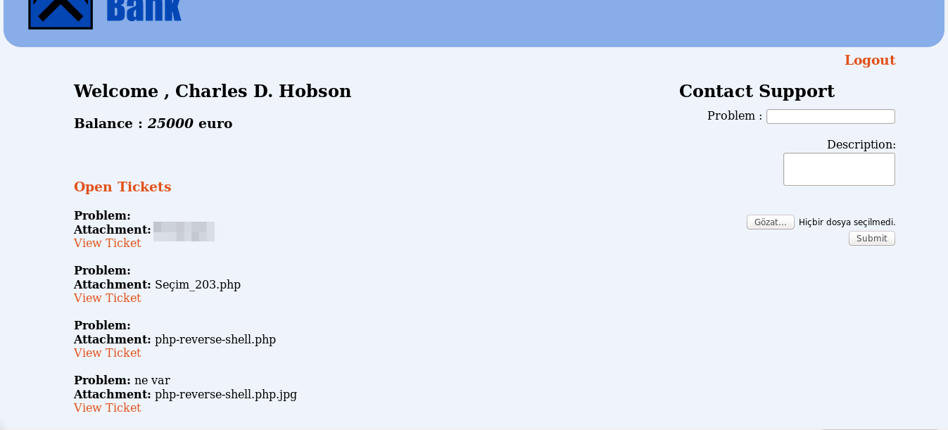 Hemen inputlarımızı aramaya başladık burada Contact Support formu bulunuyor ve browse buttonu var.Gözlerinizde çıkan reverse shell işaretlerini görür gibiyim.