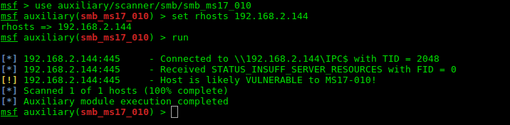 msf> use auxiliary/scanner/smb/smb_ms17_010