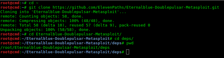 git clone https://github.com/ElevenPaths/Eternalblue-Doublepulsar-Metasploit.git