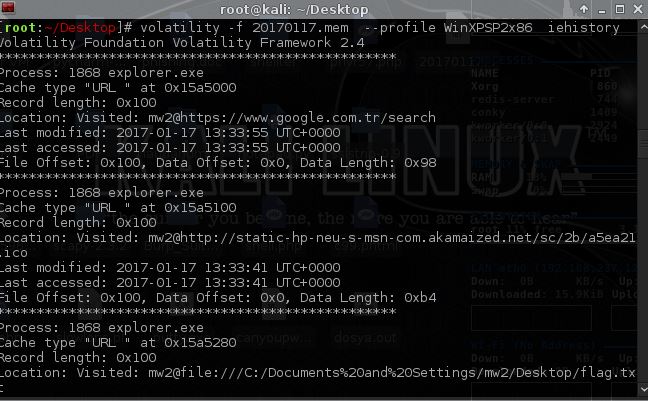 komutumuzun sonuna iehistory ekleyerek internet explorer geçmişinden nerelere ulaşıldığını bulabiliyoruz.