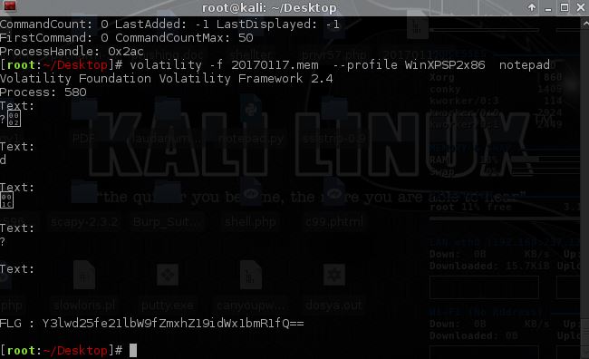 volatility -f 20170117.mem --profile WinXPSP2x86 notepad