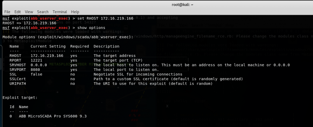 Metasploit ile exploit/windows/scada/abb_wserver_exec exploiti kullanılarak yazılım üzerinden sisteme sızılabilir.